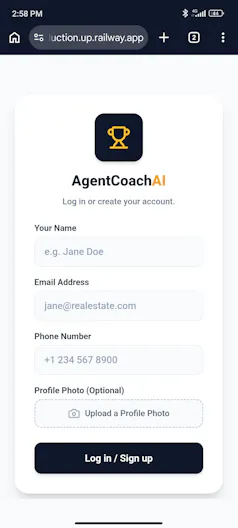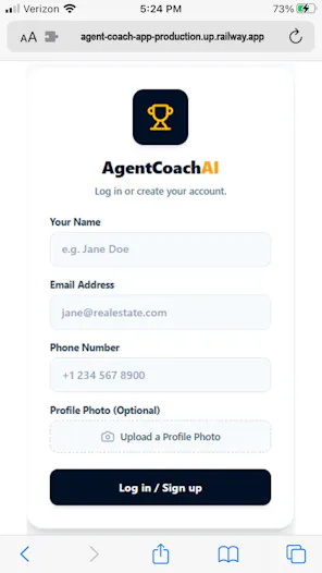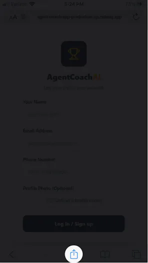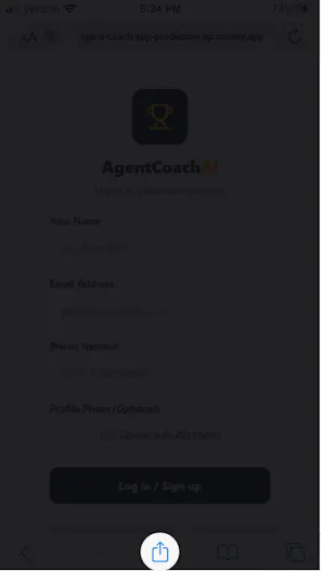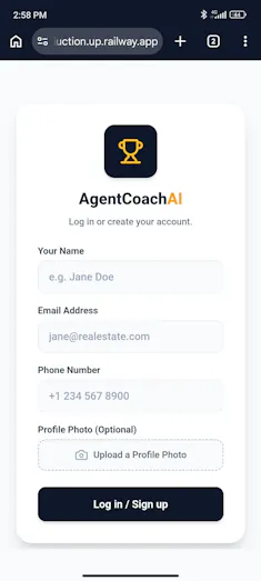 Once you open the app, log in, enter your name, work email address, and work phone number, upload a photo, and log in by clicking the “Log in/Sign up” button.