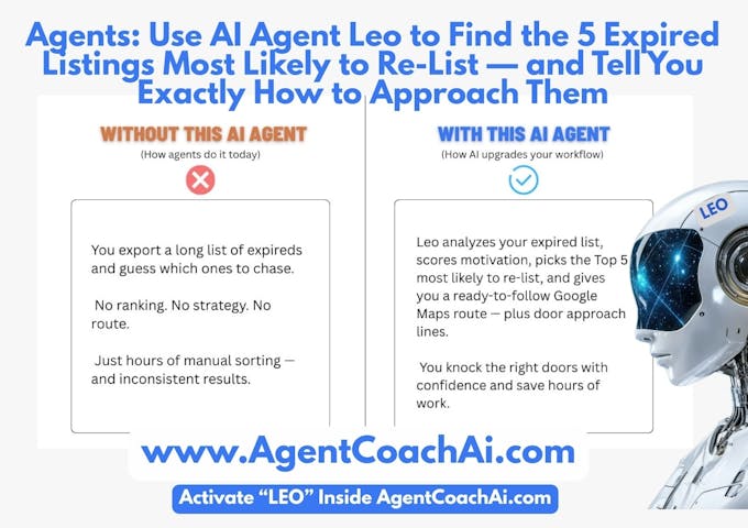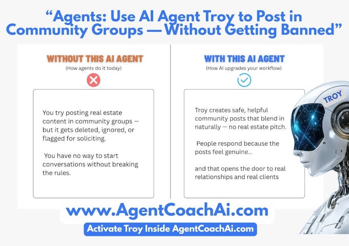 Inside, you’ll unlock pre-programmed AI agents built for real estate pros — ready to handle your most important daily tasks. Each week, new agents and prompts are added to keep you miles ahead of everyone else.